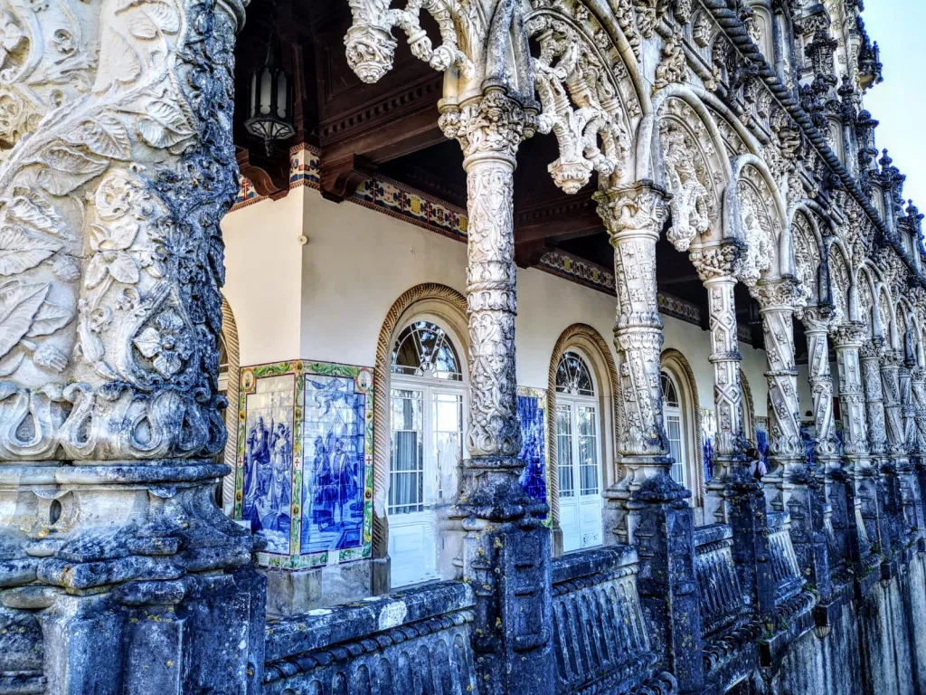 Наш путь продолжается к Королевскому охотничьему домику, построенному в стиле неомануэлино. Это здание поражает своей красотой: ажурные каменные кружева, витые колонны, огромные витражи, картины старых мастеров и традиционные азулейжу (португальская плитка).